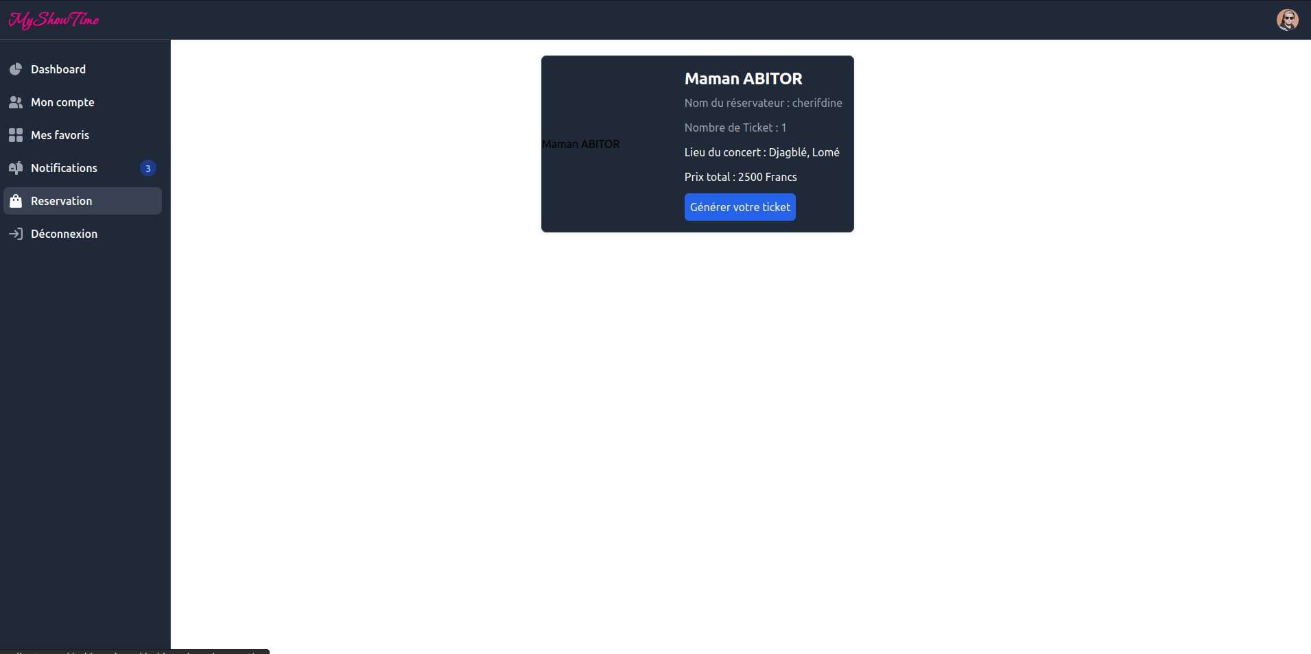 Ce projet est une application de gestion des réservations de billets qui permet aux utilisateurs de gérer leurs réservations de concerts, de mettre des concerts en favoris et de générer des codes QR pour les billets. L'application est construite avec NestJS et utilise MongoDB comme base de données.